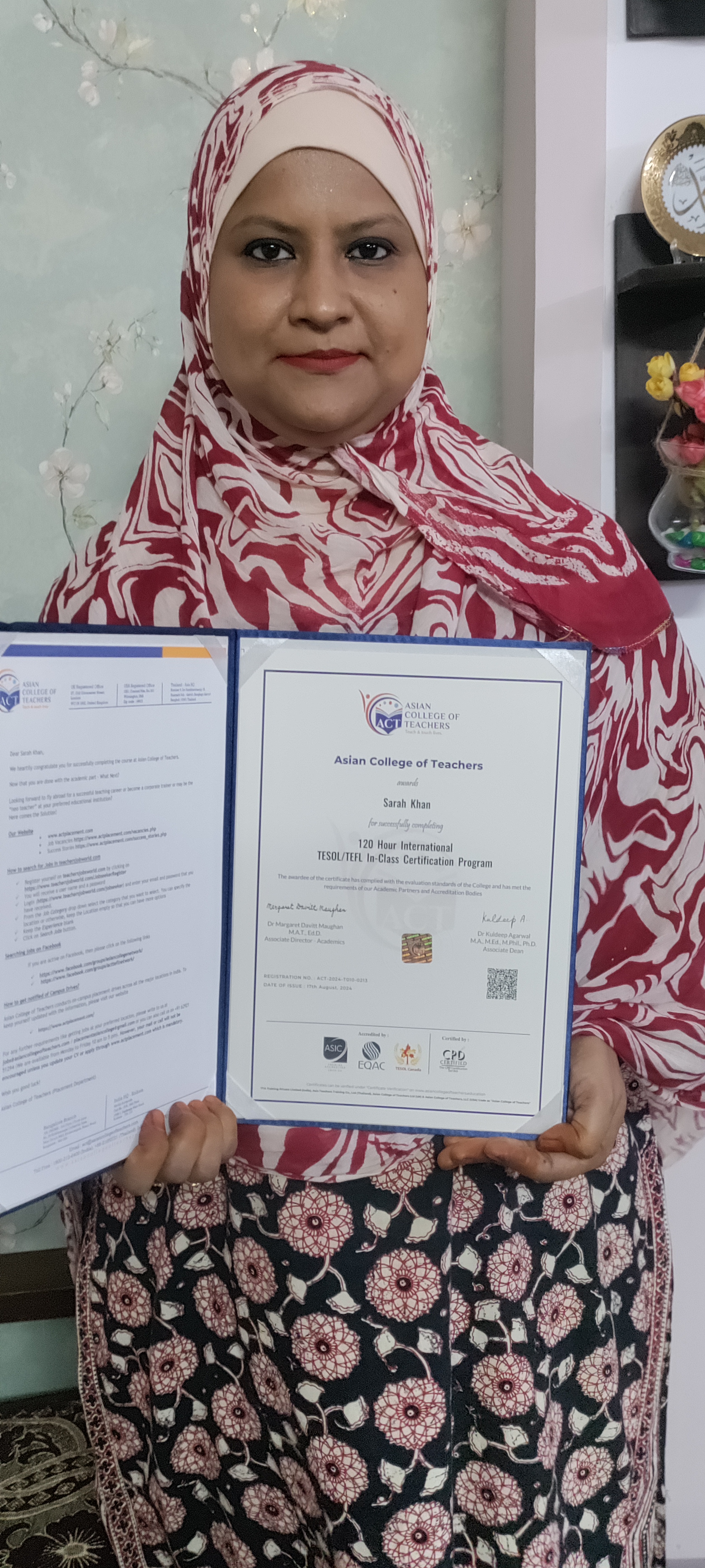 It was a wonderful experience with ACT. The course had given me an insight of teaching as a whole and helped me in developing confidence to start my career as a teacher.